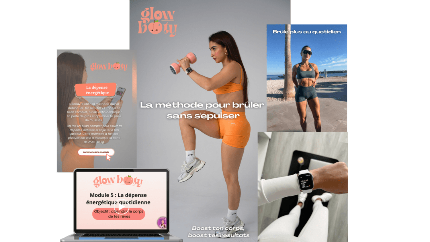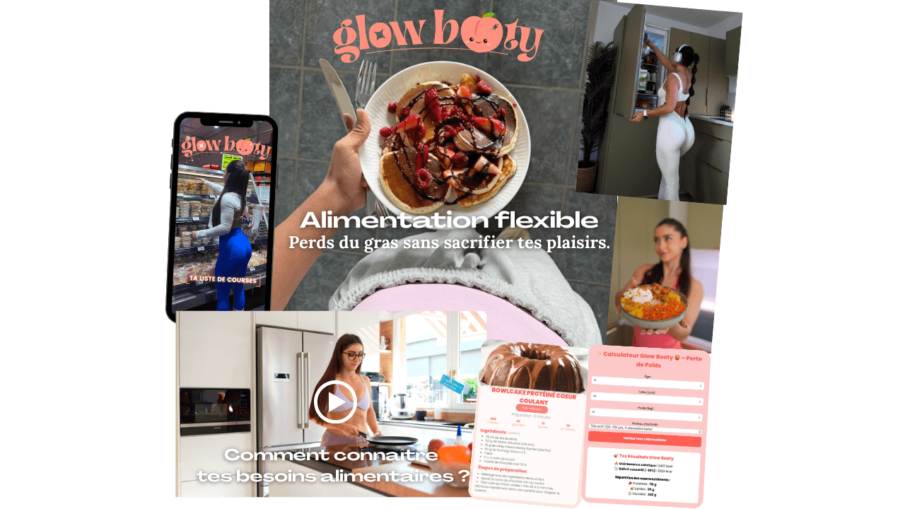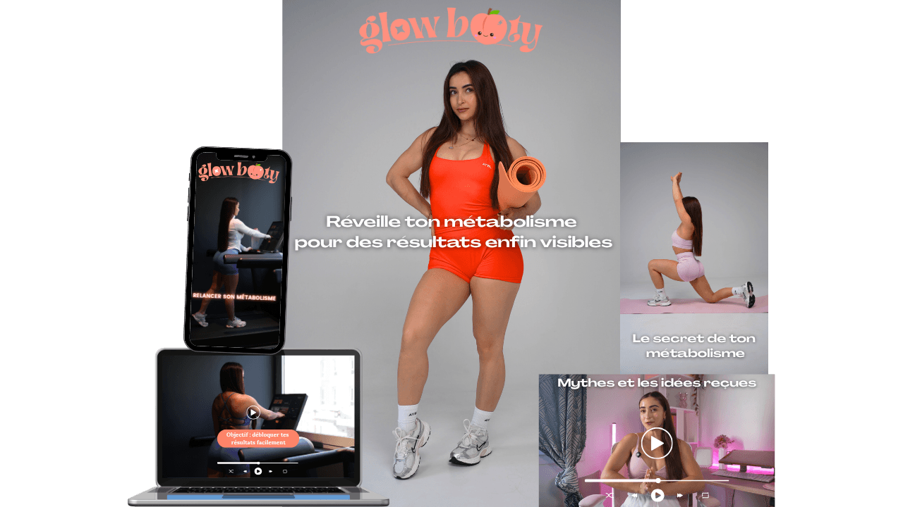 Glow Booty, c’est ma méthode, celle qui m’a permis de perdre 10 kg en moins de 5 mois, de restructurer ma silhouette et de retrouver confiance en moi, le tout sans régime strict, sans cardio épuisant, et sans perdre ma féminité.